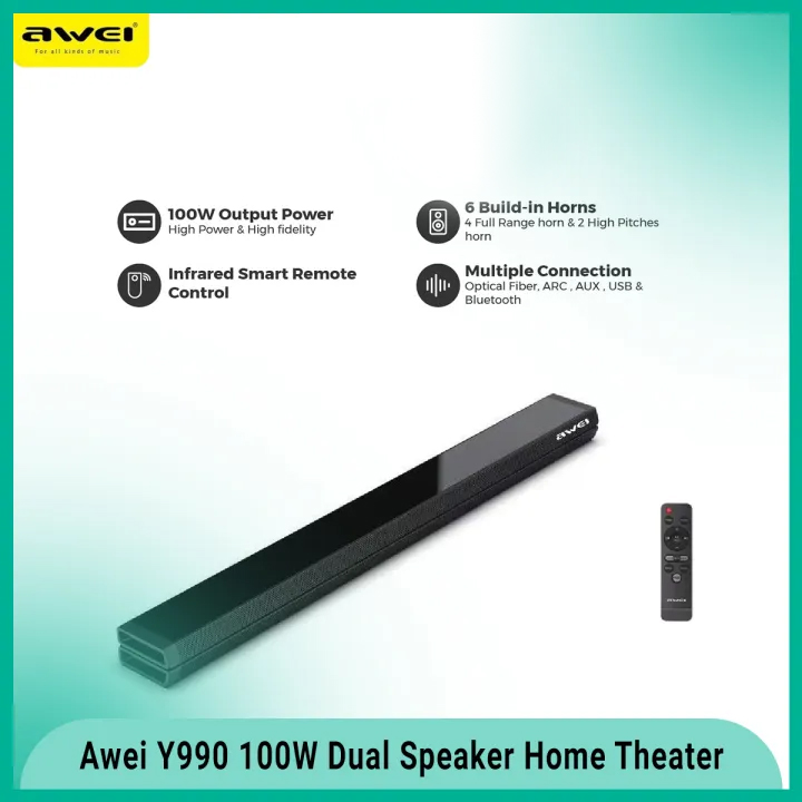 Step up your sound experience with the Awei Y990, a premium wireless Bluetooth speaker crafted for powerful audio and sleek style. With a total output of 100W from four built-in 25W drivers, this soundbar delivers bold, immersive sound that brings movies, music, and games to life. Whether it’s booming bass or crystal-clear highs, the Y990 is engineered for clarity and depth.