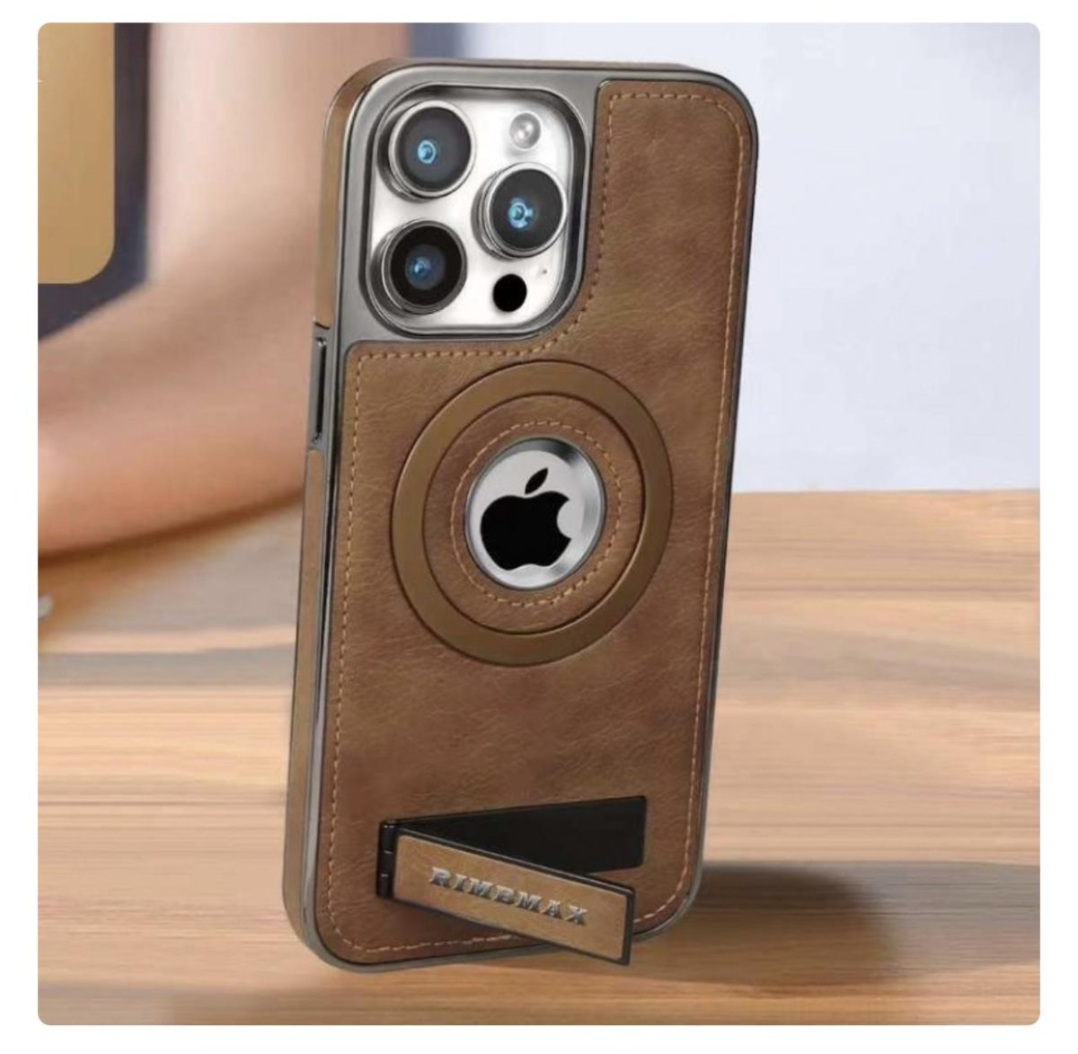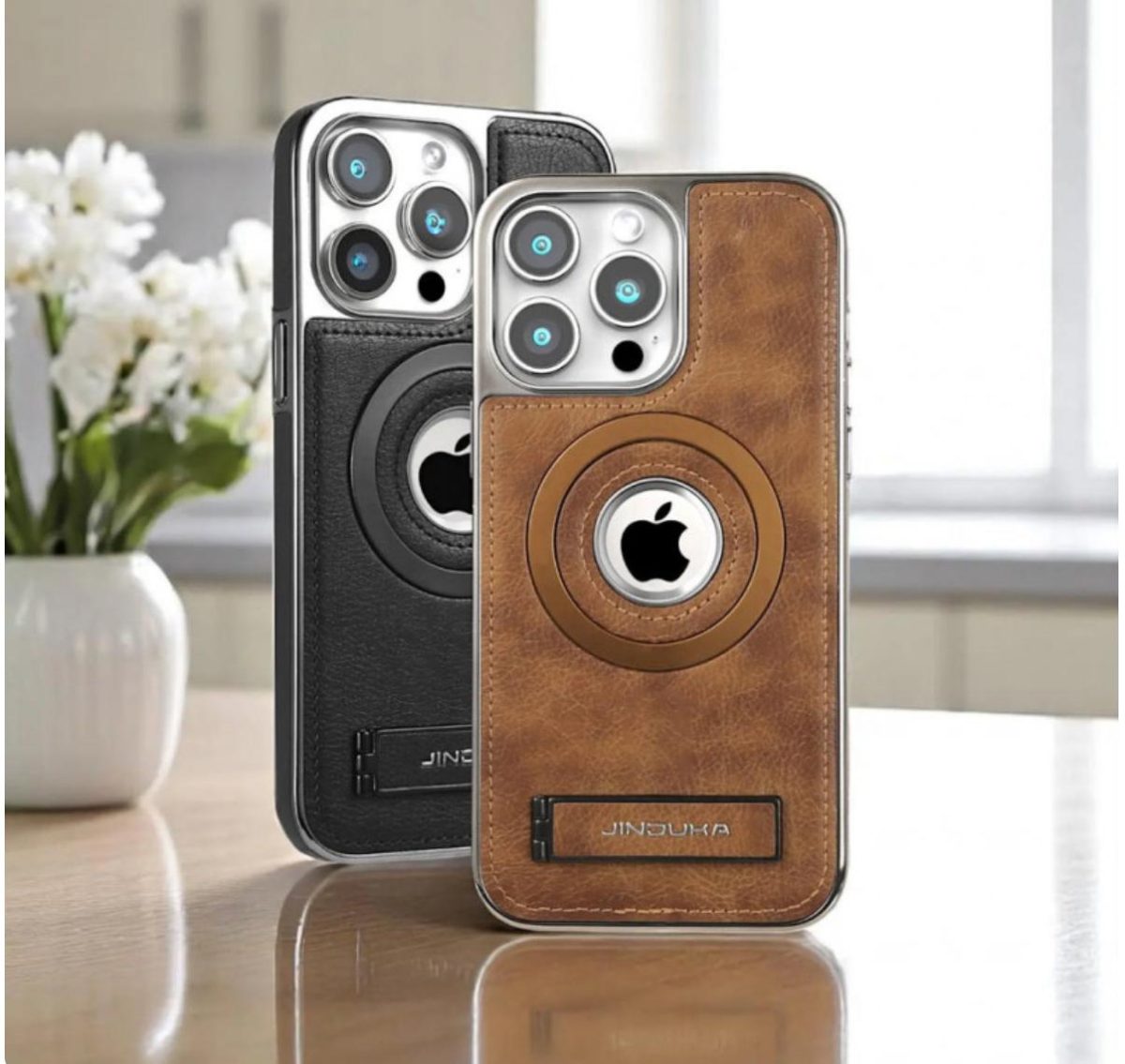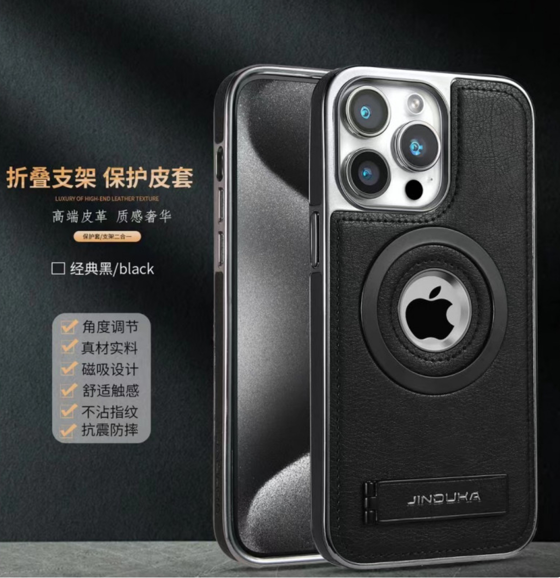 Mattel MagSafe JINDUKA ORIGINAL LEA Stand Logo Hole Leather Case PU Leather Electroplated Bezel
